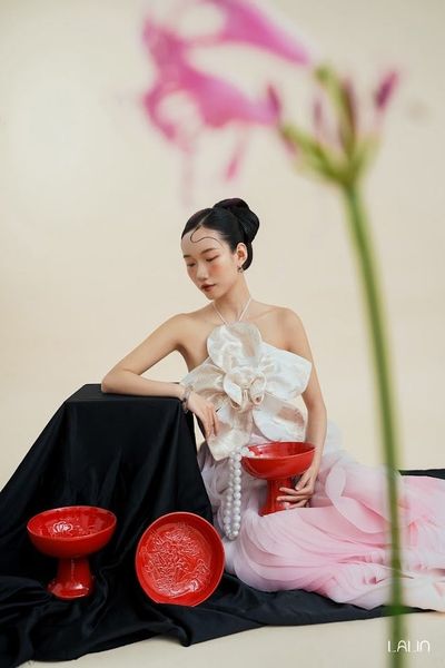 Với Lalin, Diên Hoa Vĩnh Hỷ không đơn thuần là vật dụng nghi lễ, mà còn là nhân chứng của tình yêu, sự thủy chung và lễ nghĩa, như một giá đỡ bền chặt nâng đỡ hạnh phúc lứa đôi. Và hơn thế nữa, dưới bàn tay sáng tạo của Lalin, bình gốm đã được cách điệu thành một tác phẩm cắm hoa nghệ thuật, nơi truyền thống gặp gỡ hơi thở đương đại, tạo nên vẻ đẹp vừa gần gũi, vừa mới mẻ.