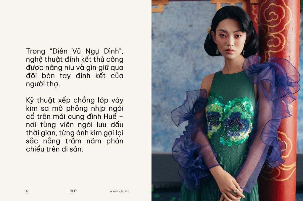 Trong mỗi thiết kế của BST “Diên Vũ Ngự Đình”, Lalin không chỉ tạo nên trang phục – mà còn thêu dệt nên những câu chuyện.