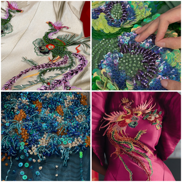 Đính kết thủ công là một nghệ thuật của sự kiên nhẫn và tỉ mỉ. Từng mũi chỉ được nâng niu, từng hạt cườm được xâu chuỗi, từng miếng kim sa lấp lánh được đặt cạnh nhau như thể đang dệt nên ánh sáng.