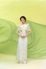 - Áo dài với chất liệu vải ren có hoa văn tinh xảo, tạo cảm giác sang trọng, quyến rũ. Áo khoác ngoài có cấu trúc dạng lưới có độ đanh, lên phom tốt.