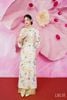 Áo dài Ái Ngọc sử dụng chất liệu vải ren kim sa, phần phối cổ và tay bằng lụa tạo sự mềm mại dễ chịu cho các nàng khi diện lên. Thân vải được đính kết những hạt kim sa có độ bắt sáng cao nhằm tạo ra hiệu ứng thu hút và bắt mắt. Kỹ thuật dập chìm nổi xen kẽ lên lớp vải ren khiến các nàng thêm phần gợi cảm và quyến rũ. Thiết kế dáng suông truyền thống kết hợp cùng chi tiết đính cúc tàu phảng phất nét đẹp riêng đương đại đậm chất truyền thống.