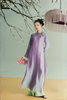 Áo Dài Tơ Tằm Lan Cầm được chế tác từ tơ tằm dệt họa tiết hoa lan độc quyền, kết hợp hoa đính kết 3D thủ công tinh xảo. Thiết kế phom suông vừa, cổ tròn thanh lịch, mang lại vẻ mềm mại và trang nhã cho người mặc. Các họa tiết sen, cúc, lan và mai cài Thọ được dệt tay bởi nghệ nhân làng lụa Hà Đông, lấy cảm hứng từ áo công chúa và hoa văn trang trí trên tường thành Huế.
